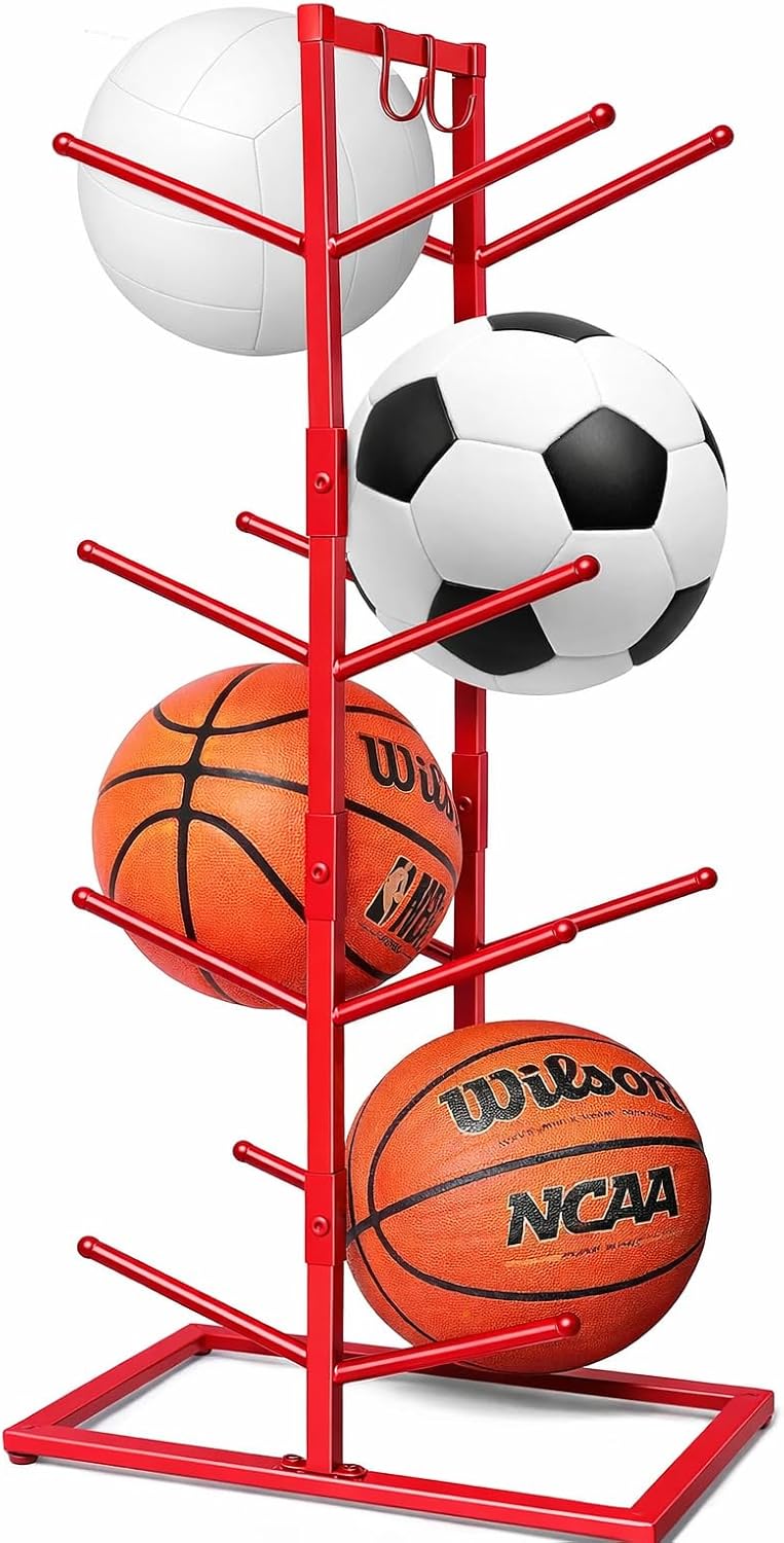 【Upgraded Large Capacity Basketball Rack】Our upgraded double-layer double-sided basketball storage rack space, four-layer space basketball rack, can maximize and effectively organize up to 8 balls. With this innovative storage solution, make your sports Gear stays neat and within easy reach, and the basketball holder is perfect for both indoor and outdoor use.