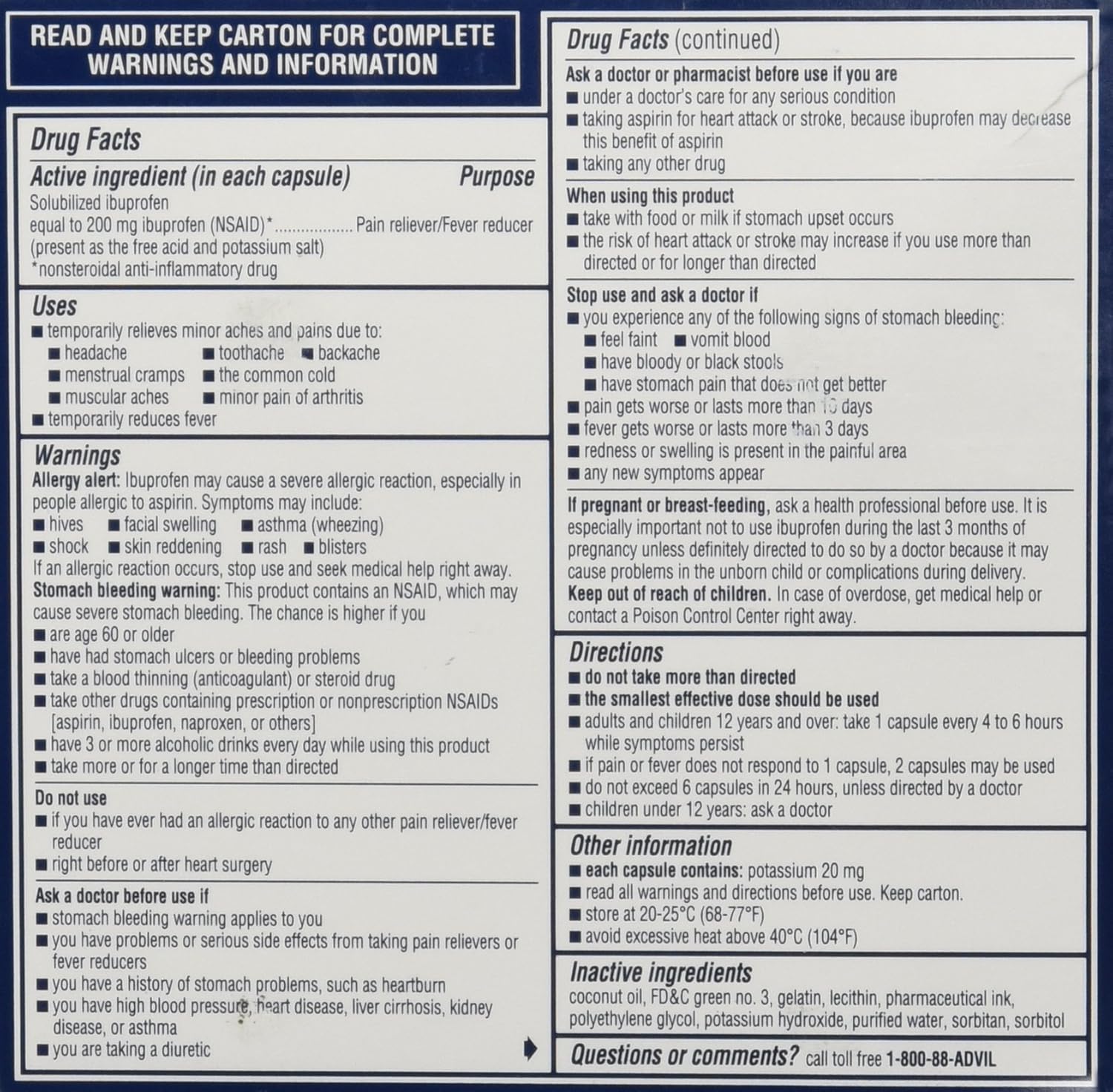 Advil Liqui-Gels rush real liquid relief where you need it and feel better fast. Relieves headaches, as well as backaches, muscle aches, menstrual pain, minor arthritis and other joint pain, and aches and pains of the common cold.