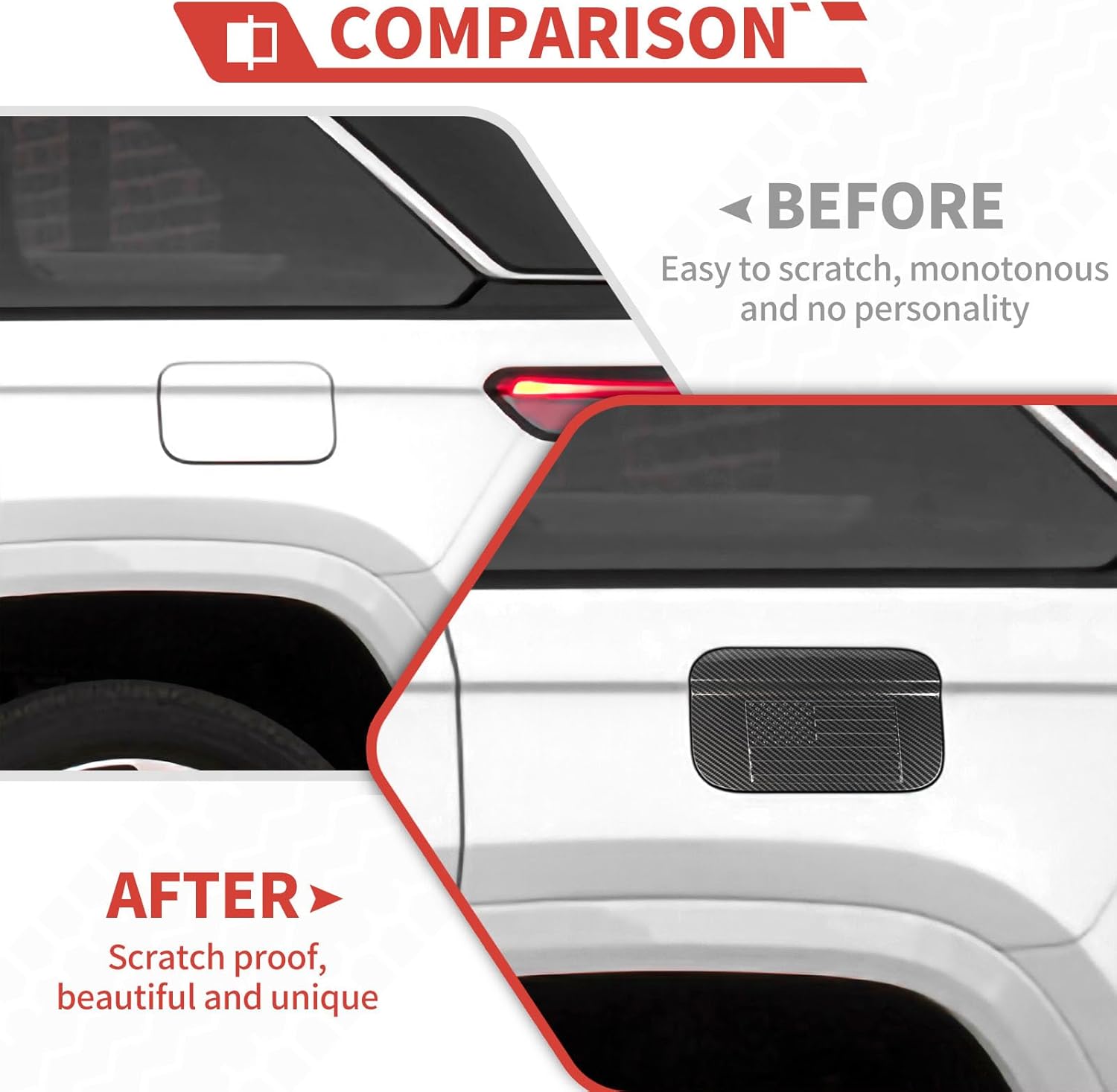 Fitment: -The carbon fiber grain fuel tank gas door cover exterior accessories fit for Jeep Grand Cherokee 2021 2022 2023 2024 2025 up. The size is customized according to the original car, please check the model carefully and check the installation position of the car gas cap cover protector with side mirror cap in the product detail picture before purchasing to avoid buying the wrong one. Features: - Condition: 100% Brand New - Color: Carbon fiber grain - Material: Carbon fiber grain car fuel tank gas cap cover protector decoration covers are crafted from high-quality ABS plastic material, does not fade, can perfectly integrate the style and color of the original kit. - Best gifts for Jeep Grand Cherokee owners: Car fuel cap replacement protector overlay kit exterior accessories are designed with a cool and fashionable appearance, three-dimensional sense, glossy and bright, the curvature can perfectly fit the original cover, enhance the grade of the car, and enhance the sporty atmosphere of your car. - The exterior amayum car fuel filler door protector overlay kit can cover existing scratches and prevent your car from scratch and abrasion. Installation Guide: Step1: Please clean the installation place and keep it dry and no dust on. Step2: Make sure you heat both the accessories and the tape on the cover piece. Step3: Tear off the double-sided tape on the back of the fuel tank cover cover and paste it to the corresponding position. If you have any questions about installation, please feel free to contact us. Package Include: - Amayum Car Carbon Fiber Grain Fuel Tank Gas Door *1