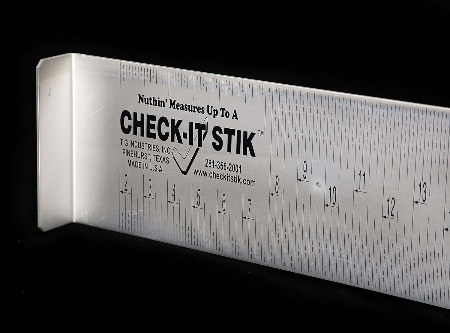 The boards are made of 1/8" anodized aluminum and have1/8" increments. The Check-It Stik is available in several sizes to suit your individual fishing needs.