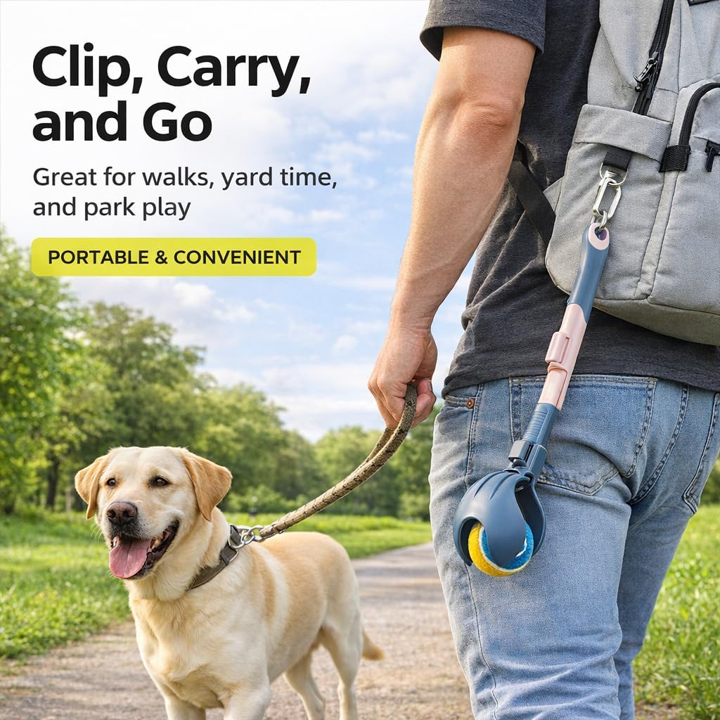 Fetch Without the Bend Make daily playtime easier with this retractable dog ball launcher designed for cleaner pickup, smoother throws, and more convenient outdoor fetch. With an adjustable length of 18.9-26.4 inches and compatibility with balls from 2.2-3.7 inches, it helps simplify the game for both you and your dog. Why Dog Owners Love ItNo-bend pickup helps reduce constant bending during fetchLess hand contact with wet, muddy, or slobbery ballsExtendable design supports a more comfortable throwing rangeFits multiple ball sizes for more flexible everyday usePortable and easy to carry for parks, walks, and backyard playDesigned for Easier Outdoor Play This fetch thrower is built for interactive play at the park, in the yard, or on the go. The extendable shaft helps create a more natural reach and smoother throwing motion, while the pickup head helps you grab the ball with less hassle between throws. Cleaner Pickup, More Convenient Fetch When the ball gets dirty or wet, you do not want to keep picking it up by hand. This launcher is designed to help reduce direct contact with the ball, making everyday fetch feel cleaner and more convenient. Adjustable to Match Your Play Style With an adjustable range from 18.9 to 26.4 inches, the launcher gives you added flexibility for different outdoor spaces and throwing preferences. It is also compatible with balls from 2.2 to 3.7 inches in diameter, giving you more options for play. Comfortable to Carry, Easy to Store Made of plastic and designed for everyday portability, this dog fetch toy is lightweight and easy to bring along. The hanging hole and included carabiner make storage and grab-and-go carrying more convenient. Package Includes1 x Retractable Dog Ball Launcher1 x Tennis Ball1 x CarabinerProduct DetailsColor: Gray and PinkMaterial: PlasticLauncher Length: 18.9-26.4 inCompatible Ball Size: 2.2-3.7 inRecommended Use: Outdoor fetch play for dogsNote: Please check ball size compatibility before purchase.