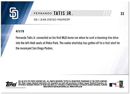 2019 Topps Now #33 Fernando Tatis Jr. RC Rookie San Diego Padres 1ST MLB HR FOR PADRES TOP PROSPECT Official MLB Baseball Trading Card LIMITED PRINT RUN 1419
