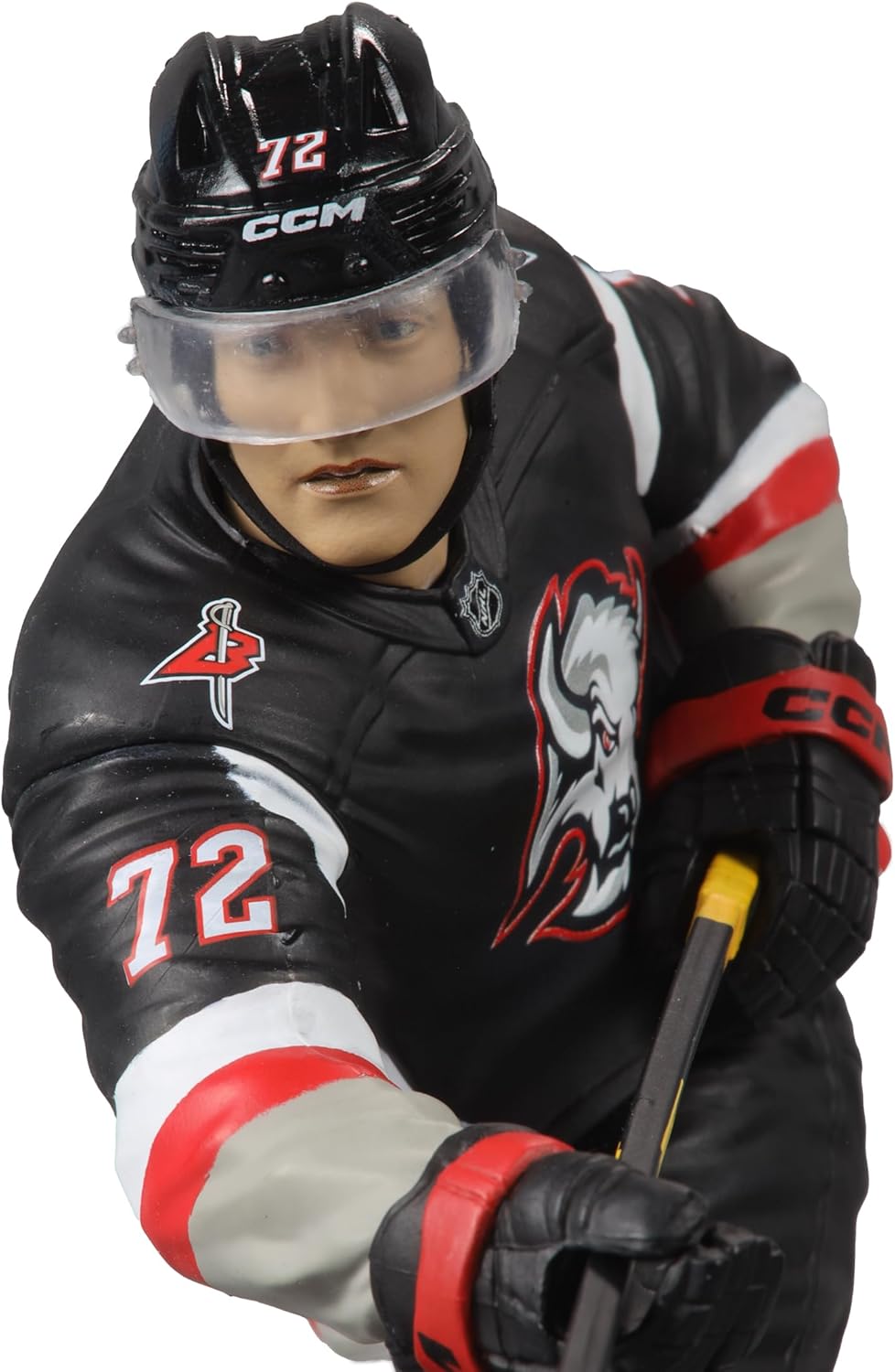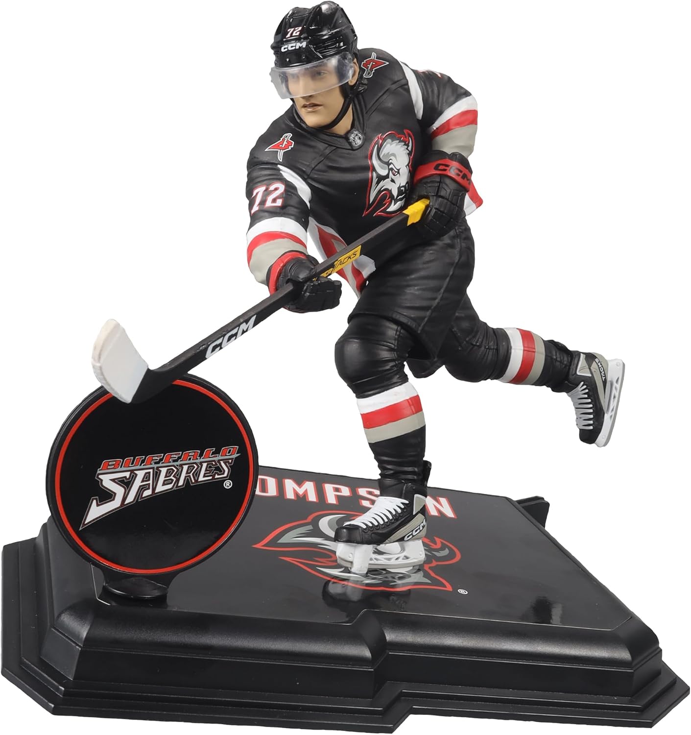 Tage Thompson (Buffalo Sabres) 7” Figure. Thompson enjoyed a breakout season in 2022-23. He scored five goals in a game including four in the first period, becoming the fourth player in NHL history to do so, tied the Sabres franchise record for goals in a game, recorded four hat-tricks, became a 40-goal scorer for the first time in his career, and was named to the 2023 NHL All Star Game.