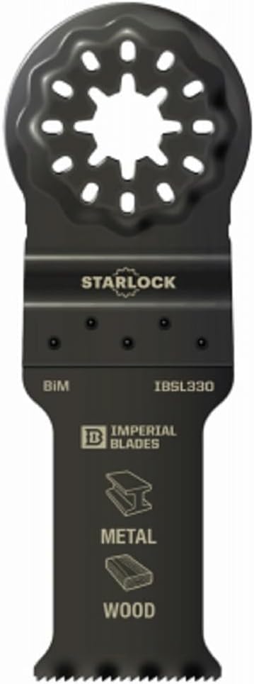 Imperial Blades' Starlock 1-1/8" Multi-Material Metal/Wood Blade is composed of heavy-duty bi-metal (BiM) for up to 5X longer life than standard Imperial high carbon steel blades. The wavy set tooth pattern makes this blade ideal for metal and multi-material applications by dispersing the wear on all teeth. Recommended applications are: Metal, Wood & Nails, Wood, PVC and more. Popular projects include deck maintenance, fence repair, flooring, framework with nails or staples and plunge cutting vents and outlets. Compatible with Starlock multi-tools: Bosch and Fein. Also fits non-Starlock multi-tools: Milwaukee, Ridgid, Makita, Rockwell and more.